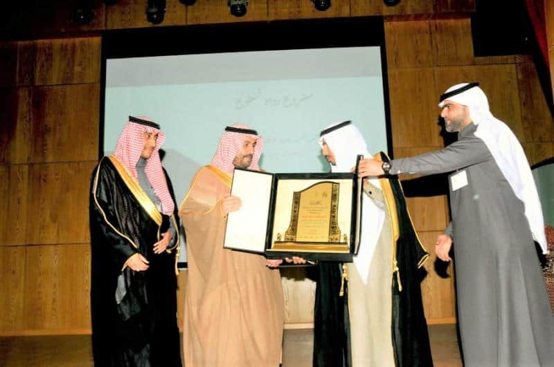 وفي نهاية التكريم قدم سعادة رئيس مجلس الإدارة درع شكر وتقدير لسعادة محافظ القريات على رعايته للحفل